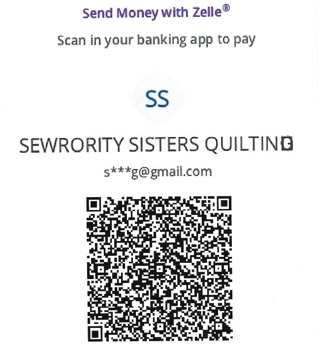 Zelle is SEWRORITYSISTERQUILTING@GMAIL.COM